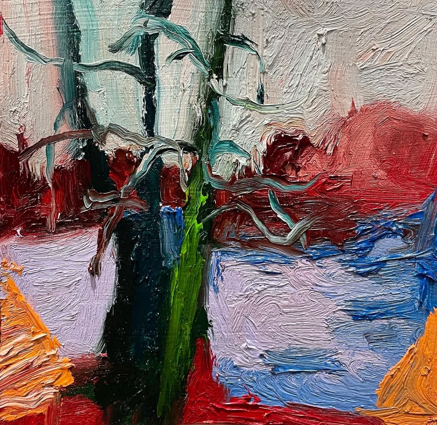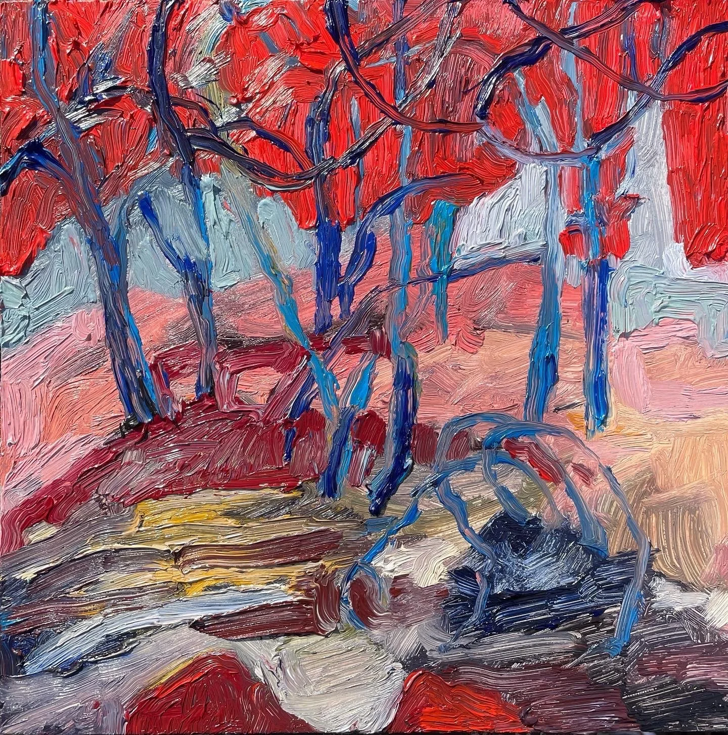 Have you ever tried to enter the long black branches? , 2022, Oil on Paper, 10 x 10 inches
